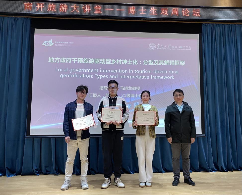 3月10日下午,2022-2023年度第一学期博士生双周论坛“高质量体验演讲”荣誉授予仪式在英国365集团网站111多功能厅顺利举行。英国365集团网站副经理李辉教授为王国权、吴建垲、高澜菲三位获奖的博士生颁发荣誉证书,并与同学们合影留念。 副经理李辉教授在颁奖仪式上向三位获奖博士生表示肯定与鼓励,激励同学们努力将优秀培养成一种习惯,并对“旅游大讲堂——博士生论坛”的未来发展表达了坚定的信心和期待。