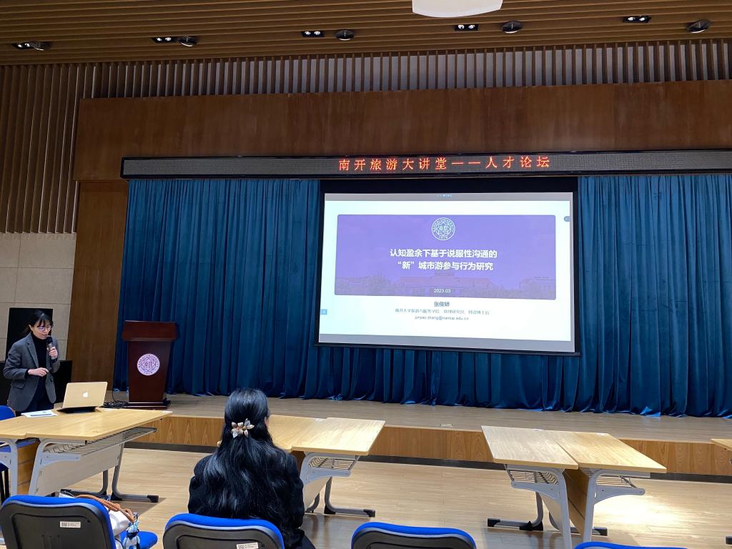 张俊娇老师以“认知盈余下基于说服性沟通的‘新’城市游参与行为研究”为主题进行了报告。首先,张老师介绍了旅游信息的说服性相关研究,具体包括研究缘起、文献研究、现有研究的不足、理论拓展、研究过程及旅游信息说服性未来研究方向等内容。接着,张老师以自身为例分享了她突破研究瓶颈、拓展研究领域的方法和过程。随后,张俊娇老师从概念介绍、文献评述、研究框架、研究发现等方面详细说明了她对“新”城市游参与行为相关探索。最后,张老师鼓励同学们要对科研问题精心深耕,在学习的同时也要不忘生活。