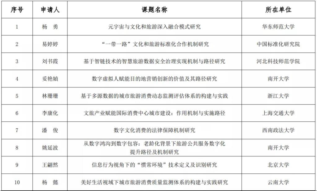 2022年文化和旅游宏观决策课题立项名单(一般课题)