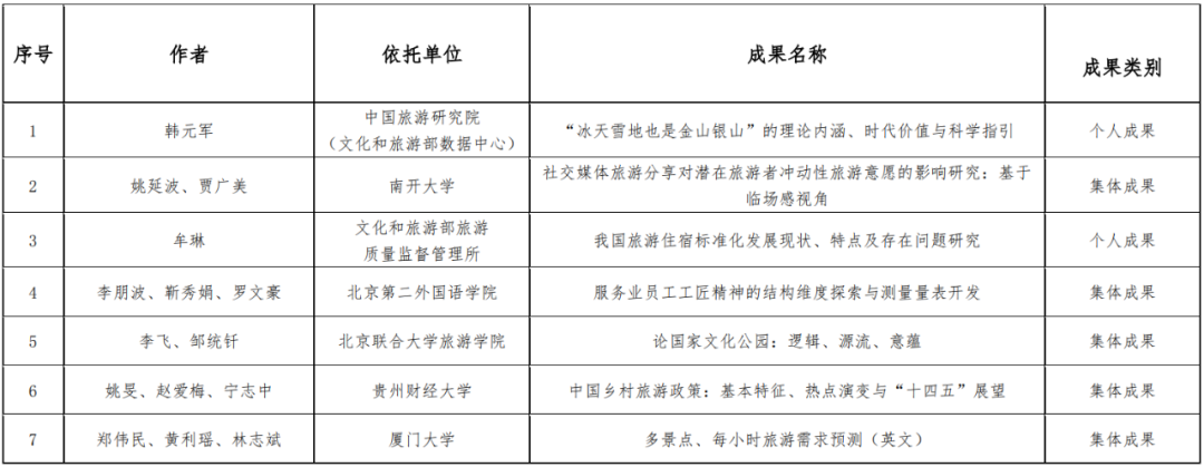 2022年文化和旅游优秀研究成果名单(学术论文三等奖)