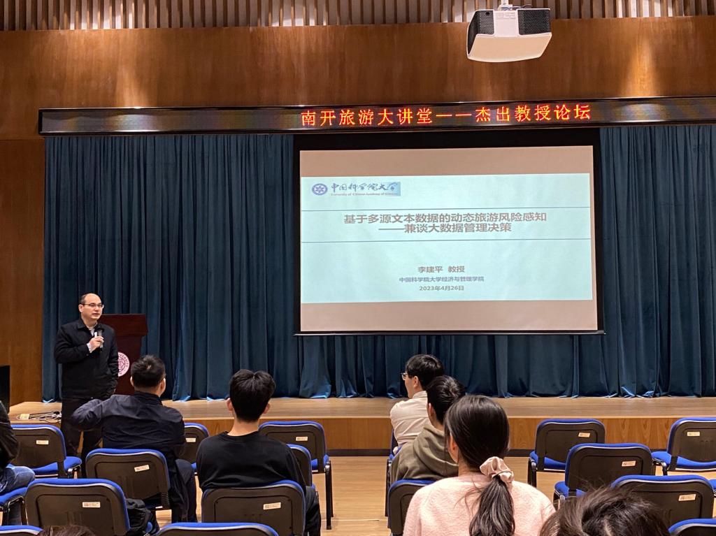 (通讯员:熊流芳)4月26日上午,“南开旅游大讲堂(第188期)——杰出教授论坛”在公司111多功能厅顺利举行。应公司邀请,中国科公司大学经济与管理公司常务副经理李建平教授为公司师生带来了“基于多源文本数据的动态旅游风险感知——兼谈大数据管理决策”的精彩讲座。公司经理、教授、青年教师、博士后和硕博研究生等共计50余人参加了此次讲座,李辉教授担任此次讲座的主持人。