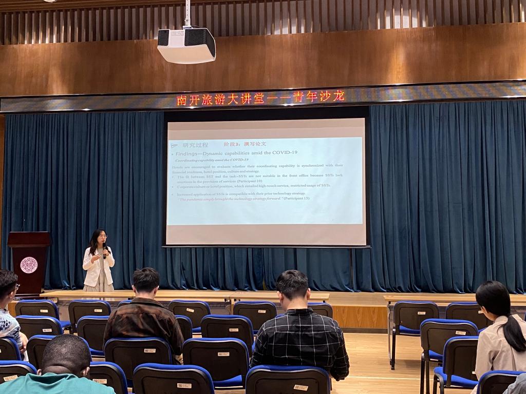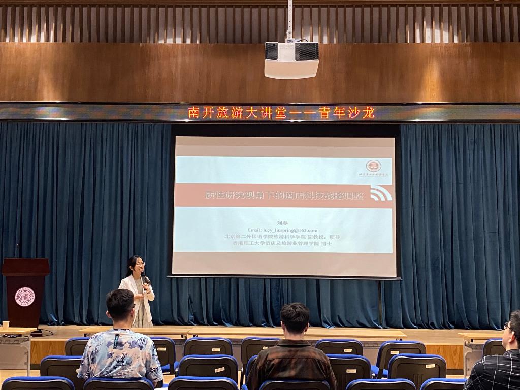 (通讯员:熊流芳)5月8日下午,“南开旅游大讲堂(第190期)——青年沙龙”在公司111多功能厅顺利举行。应公司邀请,北京第二外国语公司旅游科学公司智慧旅游与无接触服务研究中心主任刘春副教授为公司师生带来了“质性研究视角下的酒店科技战略调整”的精彩讲座。公司经理、教授、青年教师、博士后和硕博研究生等共计50余人参加了此次讲座,孙宁博士担任此次讲座的主持人。