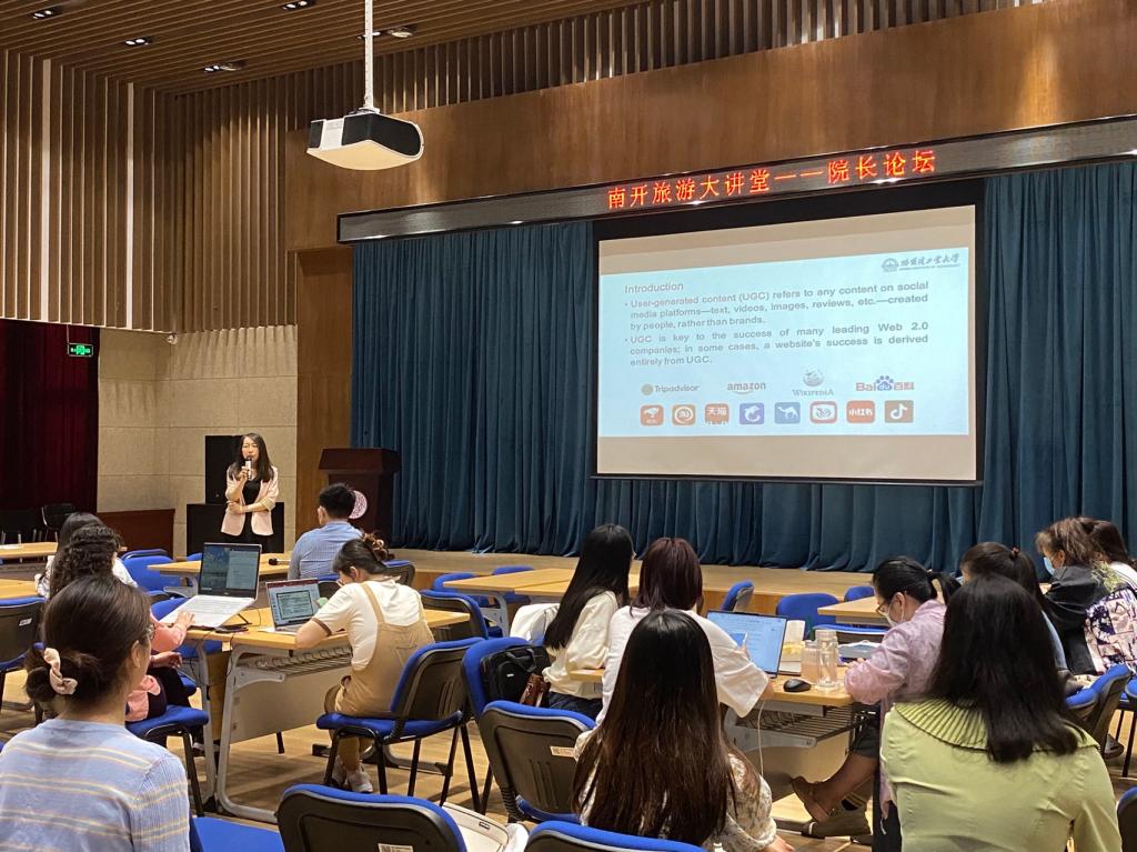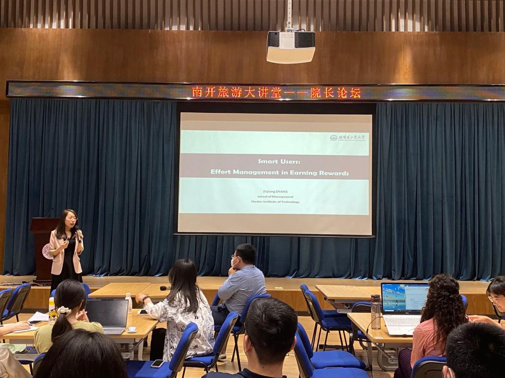 (通讯员:熊流芳)5月26日下午,“南开旅游大讲堂(第197期)——经理论坛”在公司111多功能厅顺利举行。应公司邀请,哈尔滨工业大学经济与管理公司副经理张紫琼教授为公司师生带来了“Smart Users:Effort Management in Earning Rewards”的精彩讲座。公司经理、青年教师、博士后和硕博研究生等共计50余人参加了此次讲座,梁赛副教授担任此次讲座的主持人。