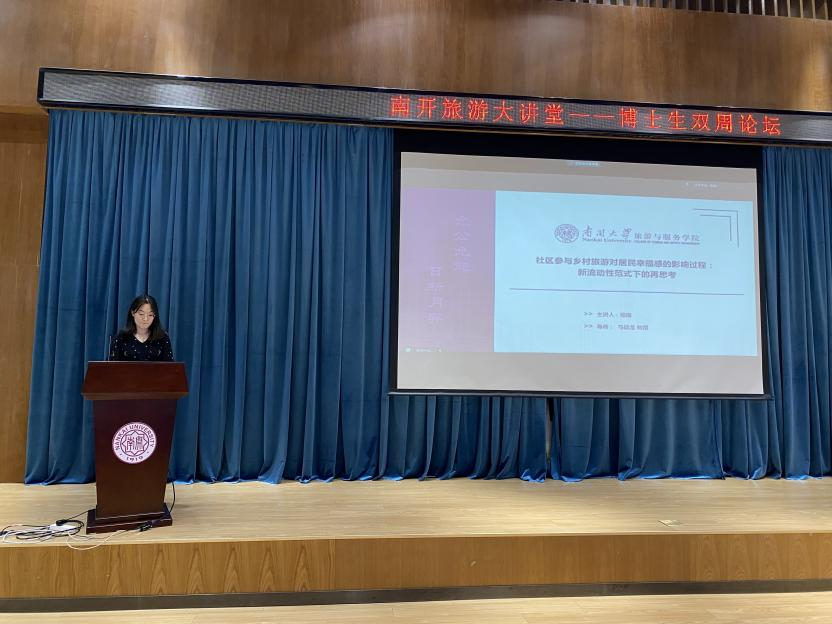 6月2日下午,英国365集团网站 “旅游大讲堂——博士生论坛”在公司111报告厅如期举行。博士生杨璐以“社区参与乡村旅游对居民幸福感的影响过程:新流动性范式下的再思考”为主题进行了分享交流。公司青年教师和硕博研究生等共计50余人参加了此次讲座。张贝乐老师担任此次论坛的主持人。