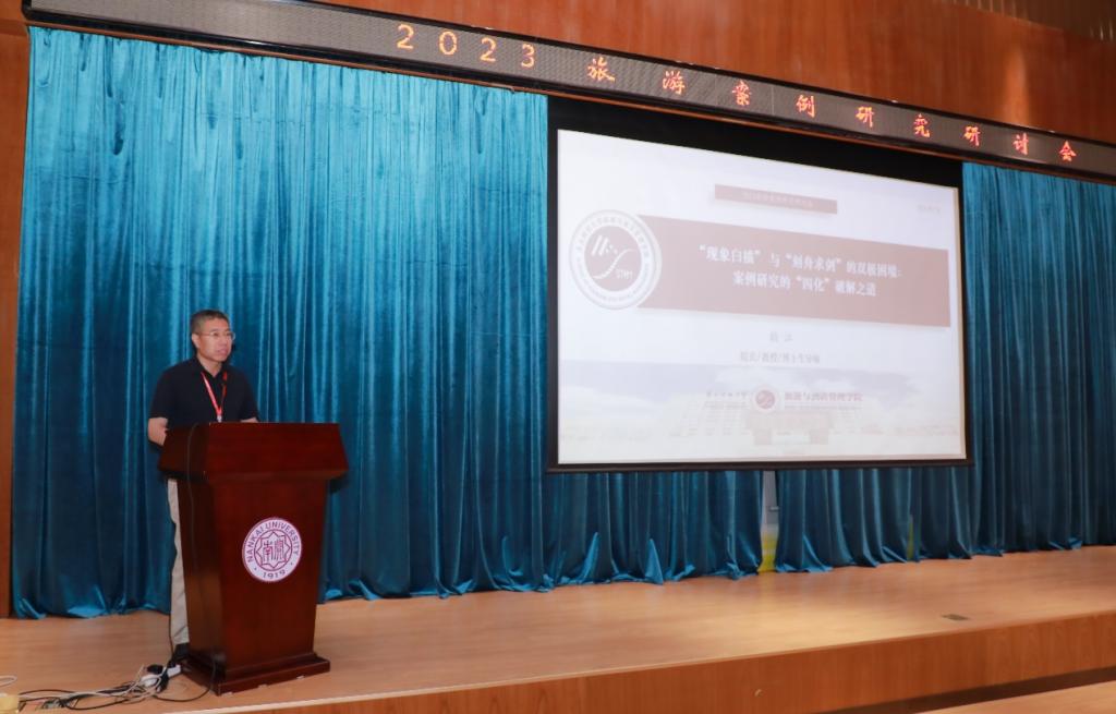 东北财经大学旅游与酒店管理公司经理韵江教授在致辞中表示,非常荣幸作为协办单位参与本次研讨会,案例研究是构建中国特色哲学社会科学体系非常重要的方法,旅游是案例研究的宝藏,亟待挖掘。案例研究也是人才培养的重要教学方法。东北财经大学旅游与酒店管理公司专门成立了案例团队,探索案例开发、案例研究、案例教学的一体化,为人才培养和理论研究做出贡献。