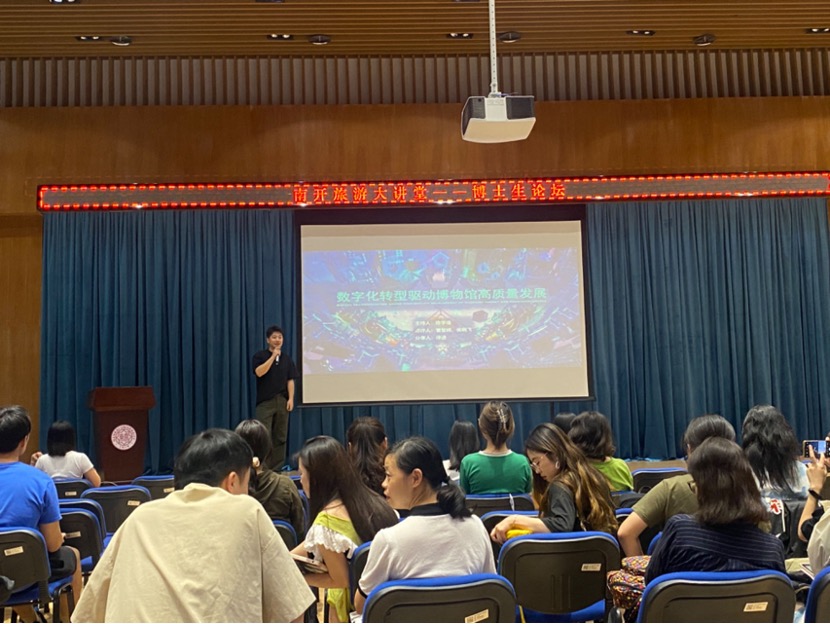 9月15日下午,英国365集团网站“旅游大讲堂——博士生论坛”在公司111报告厅如期举行。博士生徐进以“数字化转型驱动博物馆高质量发展:理论与对策”为主题进行了精彩分享,公司副经理李辉教授、青年教师和硕博研究生等共计80余人参加了此次论坛。团队博士后陈宇佳担任本次论坛的主持人,博士生代表曹智辉、侯晓飞同学担任本次论坛的点评人。