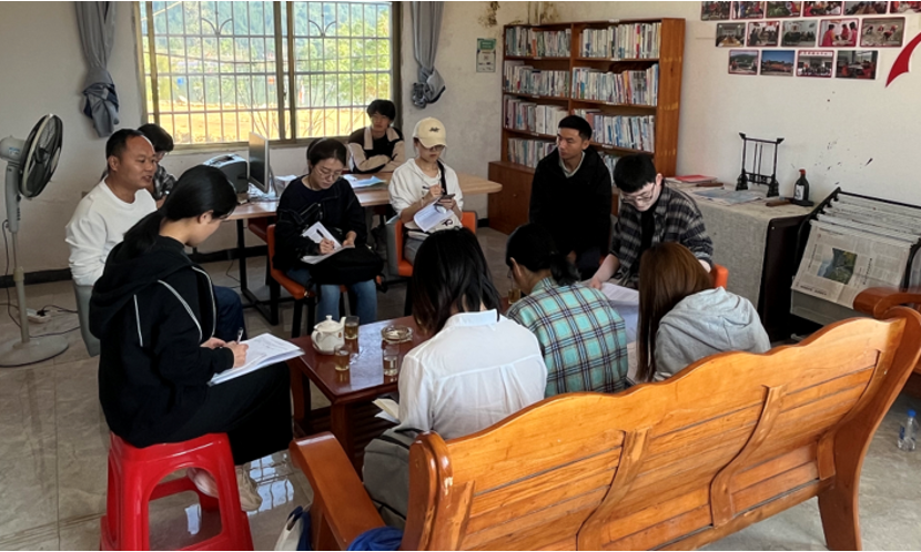 10月18日,在泮江村党支部书记叶超及村干部等人的介绍下,团队分为四组深入农户,就村民家庭基本情况与生计资本进行详谈,预计在调研期内完成200户村民可持续生计指数摸底,积累中国式现代化乡村工作站一手数据。