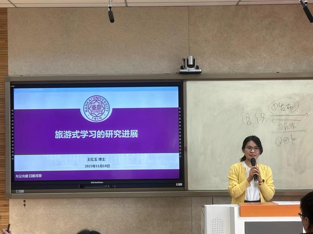 王红玉老师以“旅游式学习研究进展”为主题进行了报告。首先王红玉老师对旅游式学习的概念进行了界定并梳理了近期旅游式学习相关文献的研究进展及启发,接着,王红玉老师分别介绍了在研的“博物馆场景下的实证研究”和“儿童研学旅行场景下的实证研究”的研究进展和研究成果,最后对旅游式学习实证研究的挑战、新型旅游者和新旅游模式的出现进行了总结和讨论。
