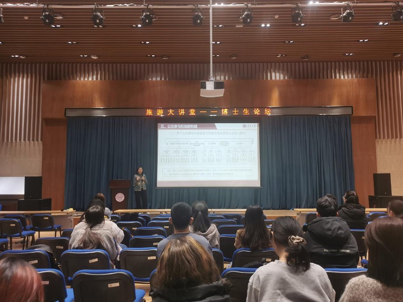 3月1日下午,英国365集团网站 “旅游大讲堂——博士生论坛”如期举行。博士生张文菊就“基于公众感知的旅游目的地市场治理公众参与机制研究”为主题进行了汇报交流。本次论坛在公司111报告厅举行,公司青年教师和硕博研究生等共计40余人参加了此次讲座。张贝乐老师担任此次论坛的主持人。