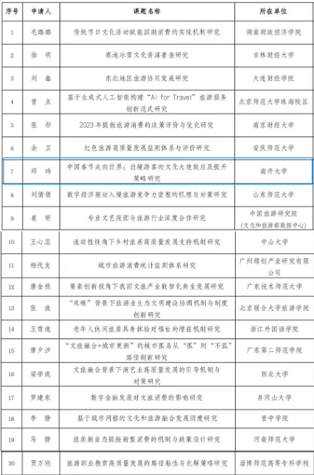 (通讯员:李奕林 于晓雅)近日,中国旅游科学年会在北京召开,会上正式公布2024年文化和旅游宏观决策课题立项名单。公司副教授邱玮团队申报的课题《中国春节走向世界:出境游客的文化大使效应及提升策略研究》获得文化和旅游宏观决策课题立项。