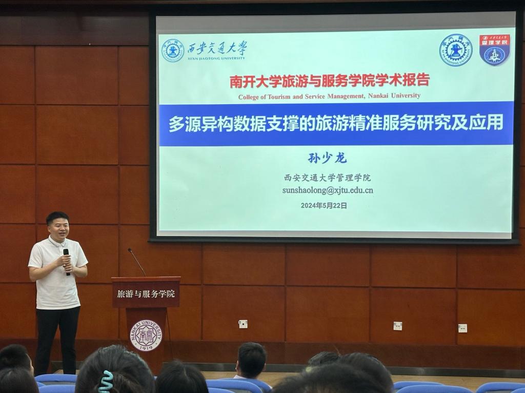 5月22日上午,“南开旅游大讲堂(第233期)——杰出教授论坛”在公司135教室顺利开展。应公司邀请,西安交通大学管理公司教授、国家重点研发计划首席青年科学家孙少龙为公司师生带来了“多源异构数据支撑的旅游精准服务研究及应用”精彩座谈。公司教师、硕博研究生共计80余人参与了此次讲座,梁赛副教授担任此次讲座的主持人。
