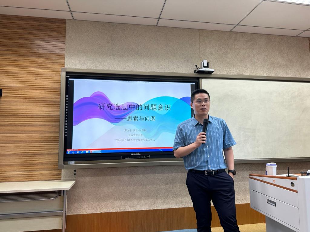 5月31日下午,“南开旅游大讲堂(第236期)——经理论坛”在公司301教室顺利开展。应公司邀请,北方工业大学科学技术研究院副经理、中国人力资源开发研究会理事、《中国人力资源开发》编辑部副主任及编委罗文豪为公司师生带来了“研究选题中的问题意识——思索与问题”精彩座谈。公司教师、硕博研究生共计60余人参与了此次讲座,王庆娟副教授担任此次讲座的主持人。