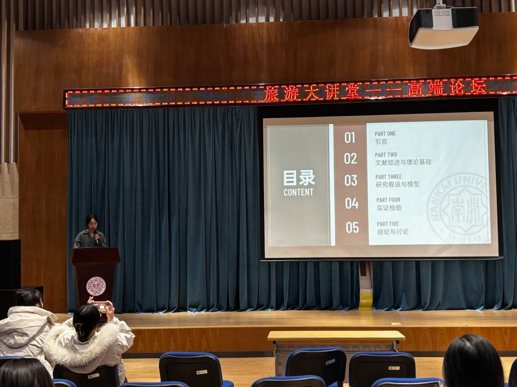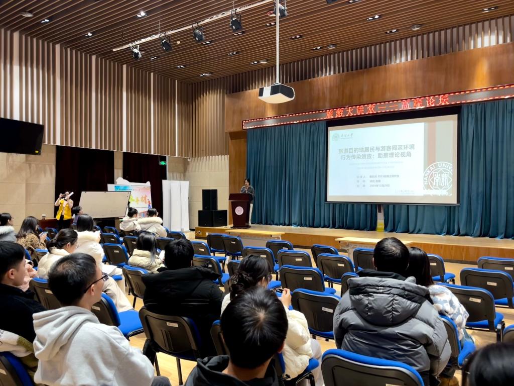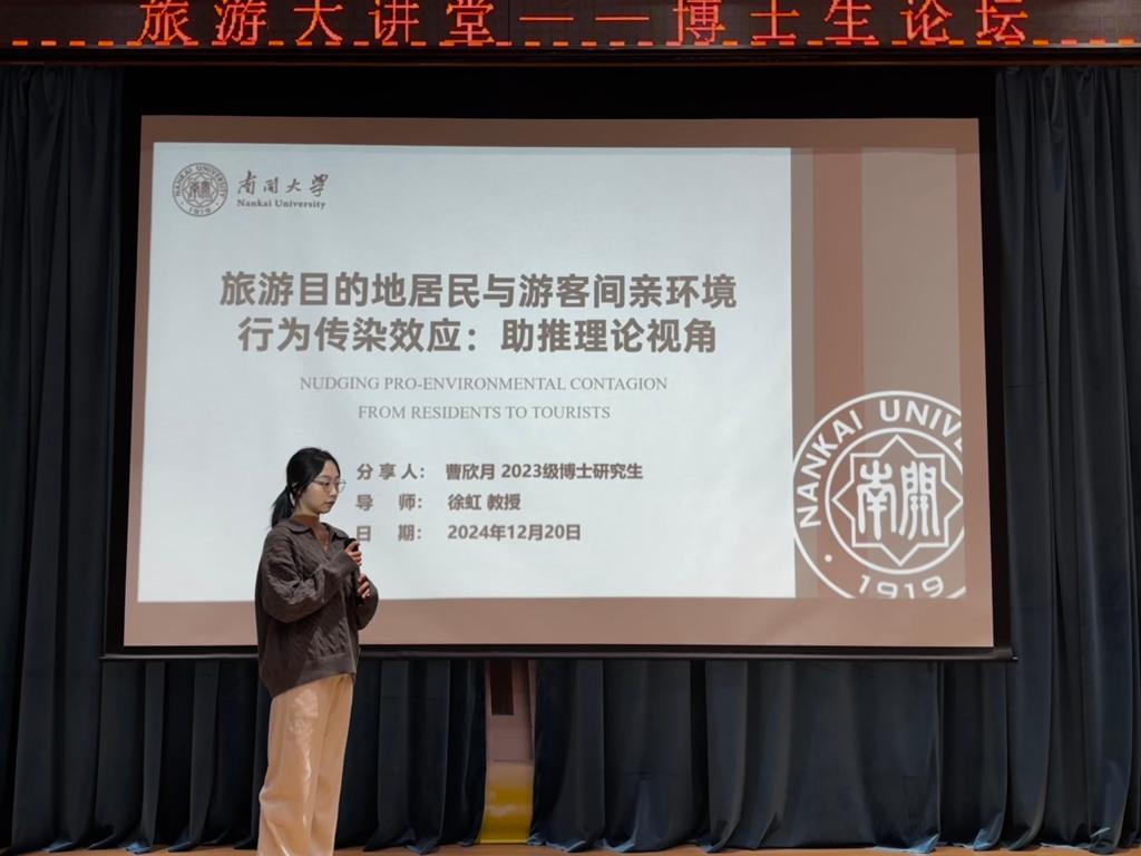 2024年12月20日下午,英国365集团网站“南开旅游大讲堂——博士生论坛”如期举行。2023级博士生曹欣月以 “Nudge pro-environmental contagion: Residents to tourists” 为主题进行了汇报交流。本次论坛在公司111报告厅举行,公司青年教师和硕博研究生等共计60余人参加。姜玉婷老师担任此次论坛的主持人,博士生屈智瑞和万紫微为点评人。