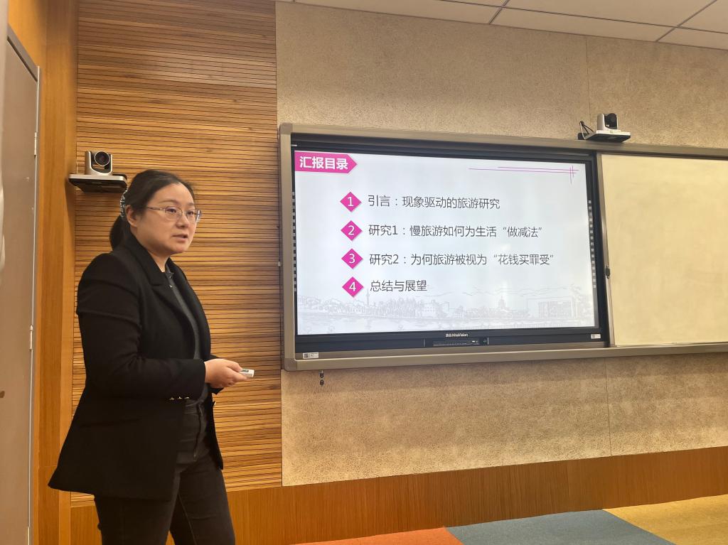 英国365集团网站助理研究员易柳夙带来了以“从现象到机制:基于节奏分析与心理账户的旅游消费体验研究”为主题的研究分享。该报告聚焦现象驱动的旅游消费体验研究,分享了两项研究成果。研究一为“慢旅游体验的减速机制”,基于节奏分析与消费者减速理论,构建“时间-空间-关系”三维分析框架,揭示了旅游者如何通过具身减速、技术减速和情境减速等方式实现身心节奏的调适与平衡。研究二为“旅游失败的评价机制”。这项研究基于心理账户理论,分析了旅游者的心理账户类别、运算规则及消费效用,并阐释了旅游消费体验被评估为失败的心理机制。