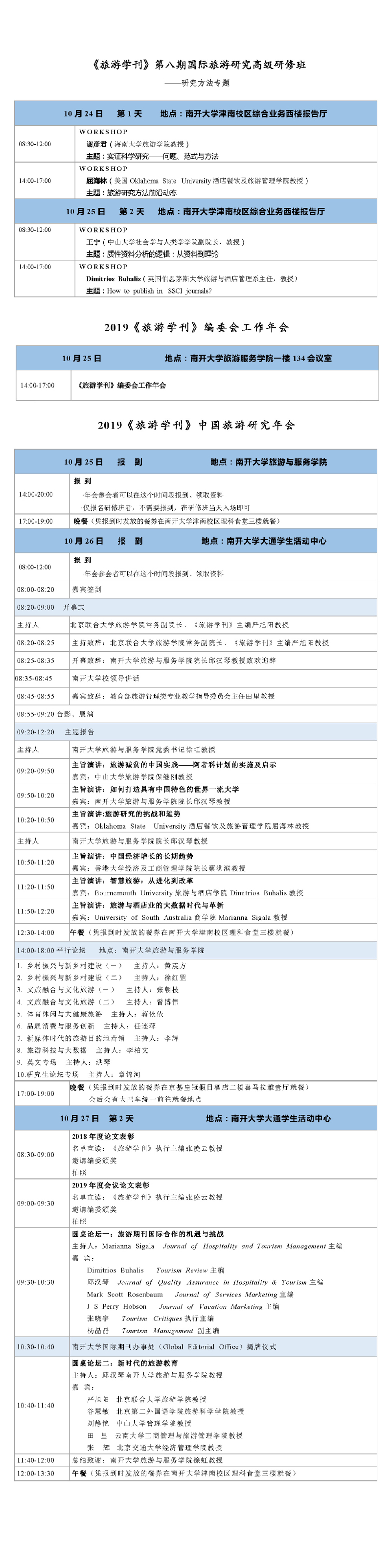2019《旅游学刊》中国旅游研究年会暨高级研修班日程安排