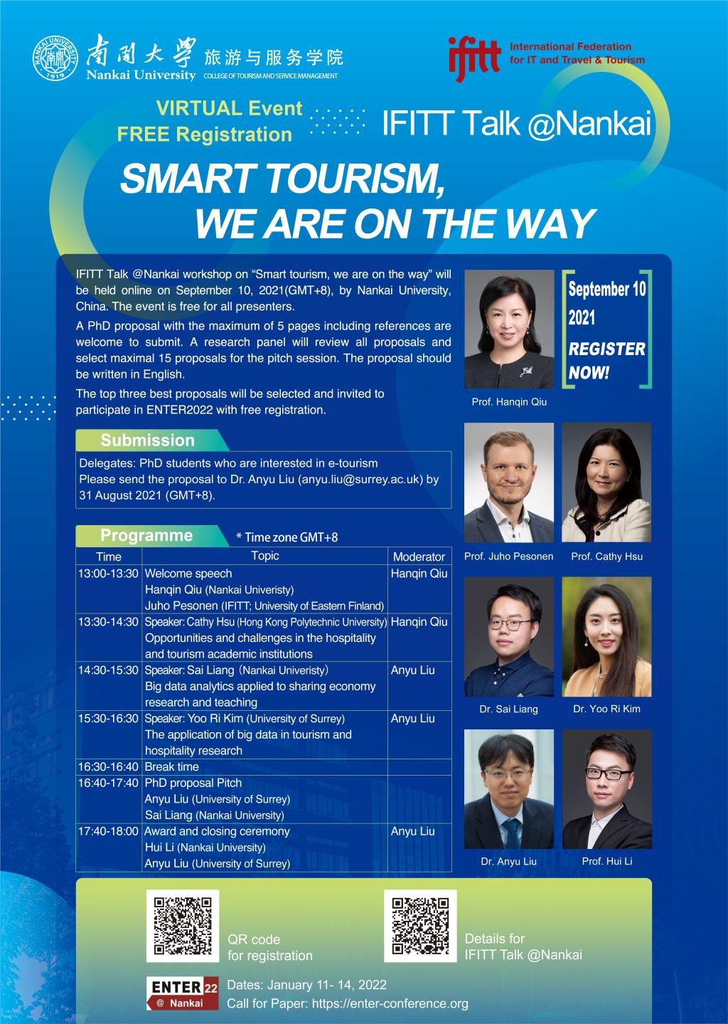 IFITT Talk @Nankai workshop on “Smart tourism, we are on the way” will be held online on September 10, 2021 (GMT+8), by Nankai University, China.