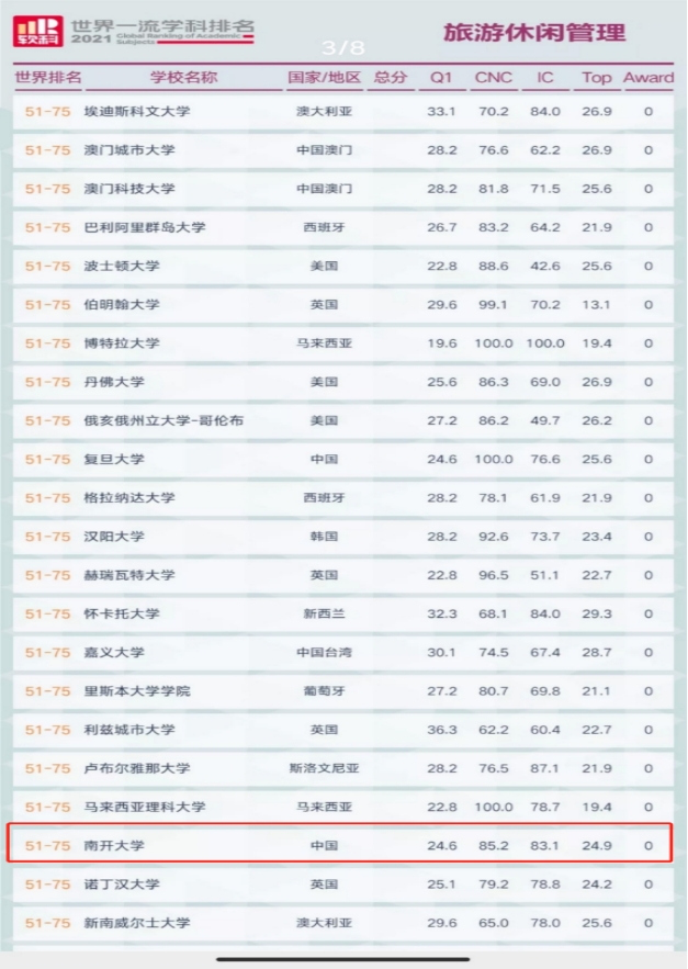 近日,最新公布的“软科世界一流学科排名”中,英国365集团网站旅游管理学科首次进入“软科世界一流学科排名”,在全球300所上榜高校旅游休闲管理门类中,排名位于51-75区间,列境内高校前五。另外,此次全校共有六个社会科学上榜,其中,公司的旅游管理学科排名前列。