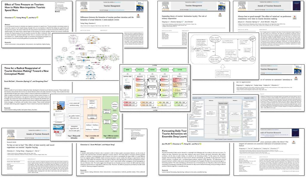 [8] Q. Li, C.X. Li*, S. McCabe, H. Xu., Always best or good enough? The effect of 'mind-set' on preference consistency over time in tourist decision making. Annals of Tourism Research, 2019, 75.