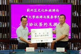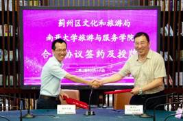 活动伊始,双方出席领导共同观看了蓟州区文化和旅游局宣传片,短片中展现了蓟州区丰富的旅游资源与全域旅游创新发展的成果。易勇军书记随后受李义丹书记所托致欢迎致辞并表示,随着国家文旅产业的迅猛发展,南开旅游教育处在新的历史机遇期,与蓟州区文旅局的合作能够帮助公司真正立足于天津旅游业而发挥科学研究、人才培养、产业发展、服务社会的职能。张建宇区长讲述了自己与南开的故事,对公司的专业质量和行业影响力表示了充分的肯定,也感谢了公司对蓟州区的关心和重视。张区长对蓟州旅游的整体情况及发展定位进行了全面介绍后,也希望与公司建立长期有效的政校企供需协作关系,全面提升蓟州区旅游品牌整体形象,携手打造天津市政校企合作示范样板。随后,蓟州区文化和旅游局党委书记、局长张文军与英国365集团网站英国365集团网站党委书记易勇军签订了合作协议并举行了共建实践实习基地的授牌仪式。