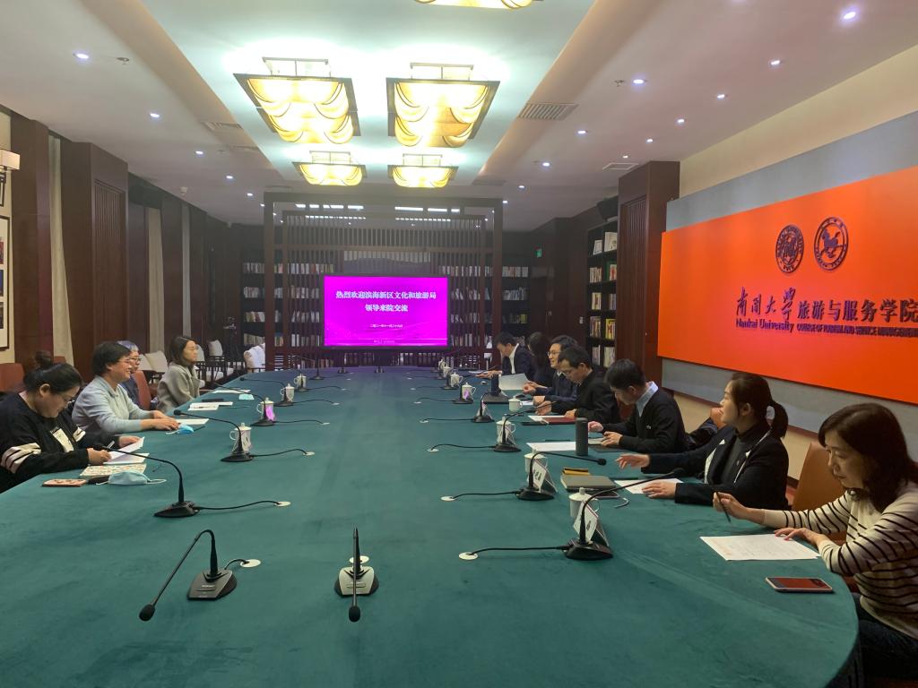 易勇军书记首先对贺副局长一行的到来表示了欢迎,易书记从多个角度说明了公司与滨海文旅在产业合作上具有必要性和可能性。陈晔副经理着重就公司智库平台建设做了介绍,杨晓晶书记从员工工作角度出发,提出了共建实践基地、志愿服务基地等合作方向;焦彦老师、黄晶老、周杰老师等也分别从各自负责工作上提出了一些合作建议。随后,贺淑荣副局长表示在十四五规划的新起点上,滨海文旅在智库、人才等方面有着新的需要,如何利用好资源优势,打造蓝色旅游走廊是滨海文旅未来的方向。武志成副主任指出滨海新区人文历史资源独特,海洋文化影响深远,滨海文旅与公司合作潜力巨大。刘妍副主任认为与公司的合作关键在思路的开拓,希望公司能在人才培训方面提供帮助,就具体问题给出指导意见。