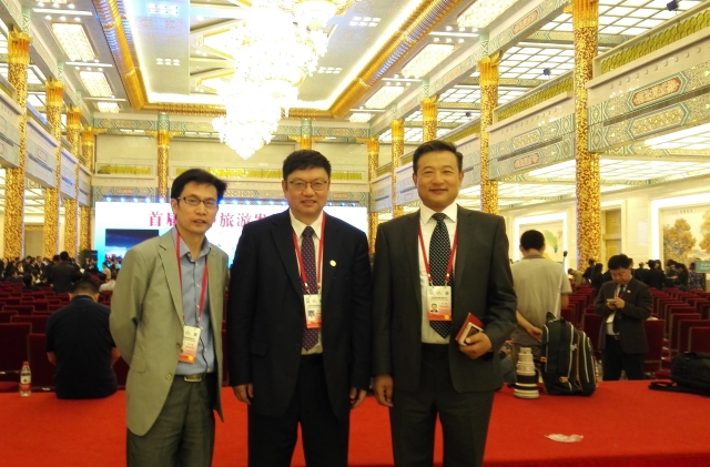 2016年5月18日至21日,首届世界旅游发展大会在北京举行。白长虹经理、石培华教授应邀出席大会,石培华教授起草完成了首届世界旅游发展大会宣言、首届世界旅游发展大会官方会议文件《中国旅游发展报告》。图为现代旅游业发展协同创新中心主任石培华,联合主任保继刚、白长虹在会场的合影。