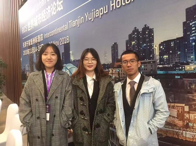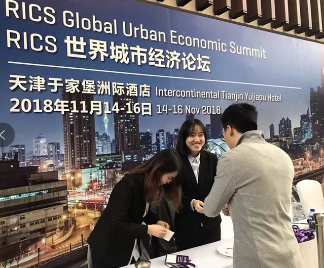2018年11月14-16日,皇家特许测量师学会(RICS)“世界城市经济论坛”在天津举行。北京会聚易捷信息技术有限公司(EventBank)为此次大会提供签到环节的技术服务,并向公司招募贺一苹、雷欣然和查汉斌三名本科生作为志愿者参与相关会议服务工作。