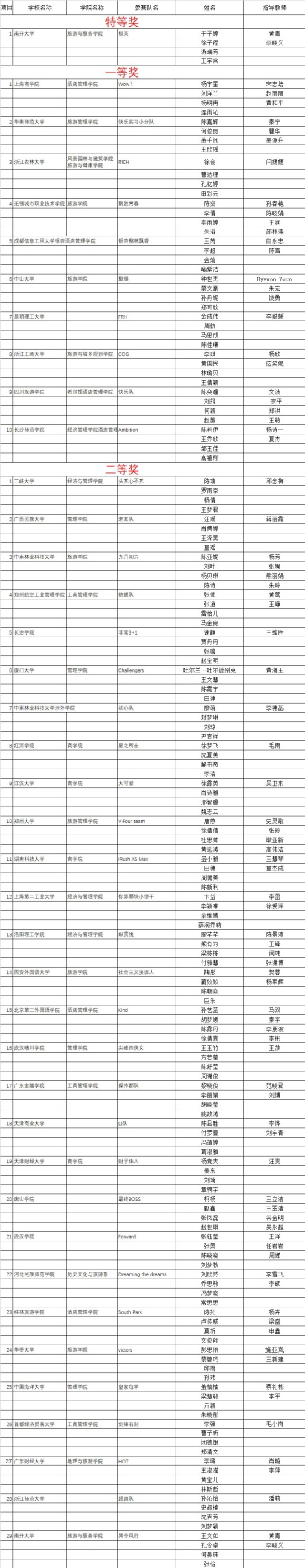 附第三届“尖烽时刻”酒店管理模拟大赛获奖名单