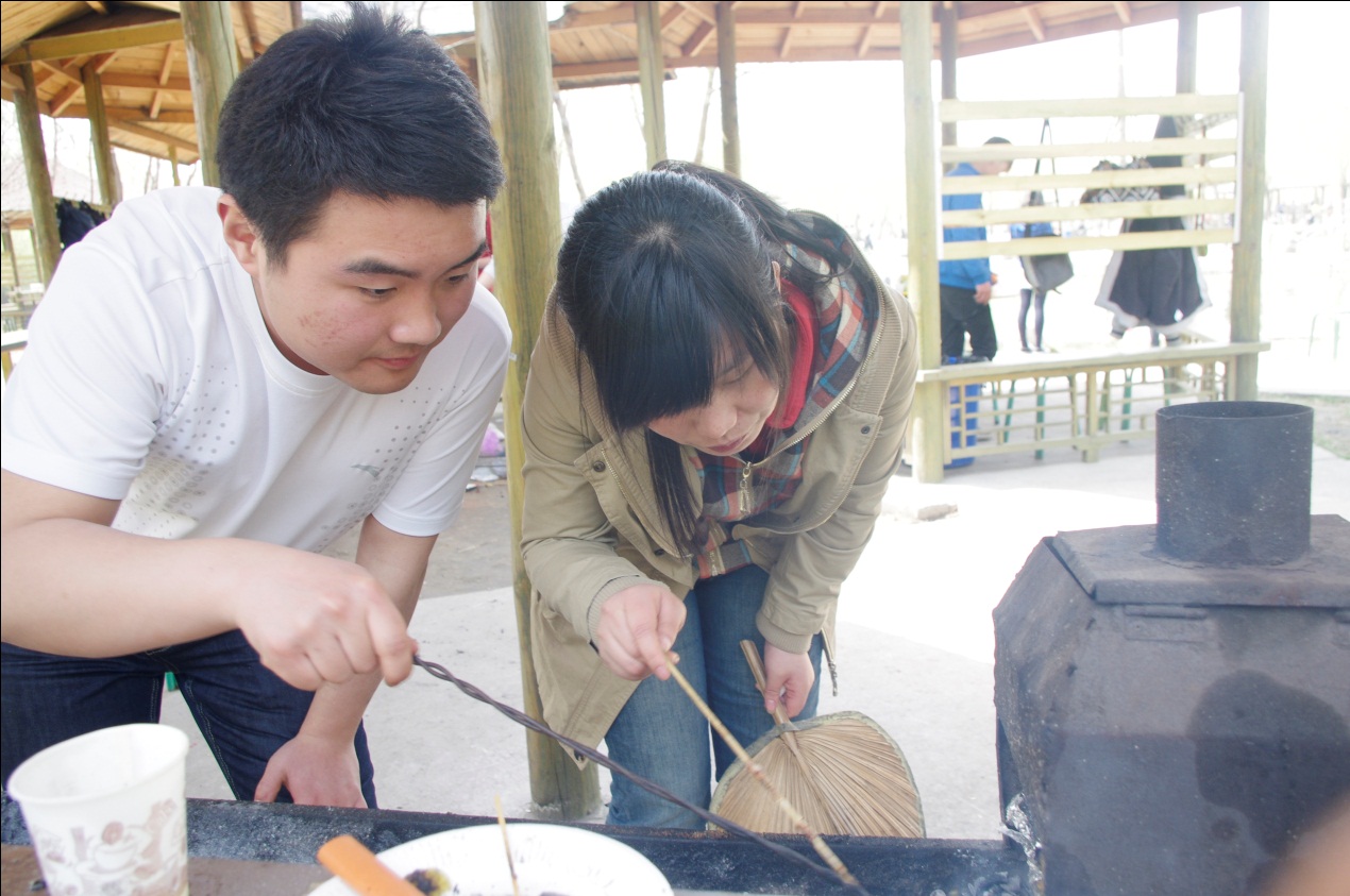 烧烤期间,同学们通力合作,有的穿串;有的主控烧烤架;有的负责倒水。有条不紊地进行着自己的工作,最终使得此次烧烤非常成功。其中软件公司研一的唐航学长,充分发挥自己烧烤水平高的优势,全心全意地为同学们服务。为此次PATA的春游贡献颇多。因此还备受大一学妹的崇拜,笑称他是难得一遇的好男人。