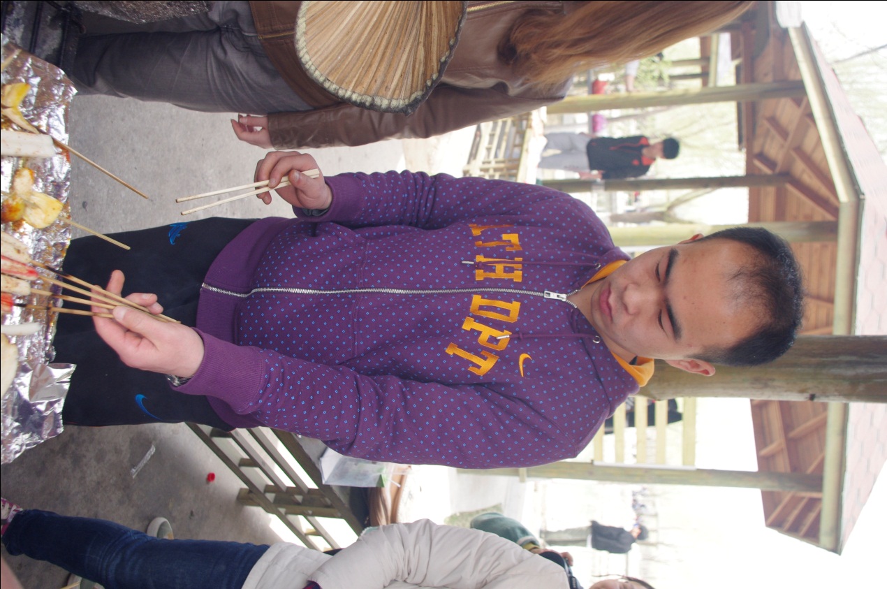 南开PATA分会的组织者,为了此次春游,提前购买了部分烧烤必备的蔬菜、调料、签子等物品。并且在春游人数较多的情况下,灵活调整计划,分为两组,购肉制品组和烧烤组同时进行。肩负购买肉制品重任的同学们,精打细算,准确计划预算;再考虑到H7N9流感横行的现状,还放弃购买鸡肉制品,转为羊肉制品;虽然此次春游男生人数较少,但是南开的女生也有汉子般的铮铮铁骨,努力地扛起了提水提肉的重任。