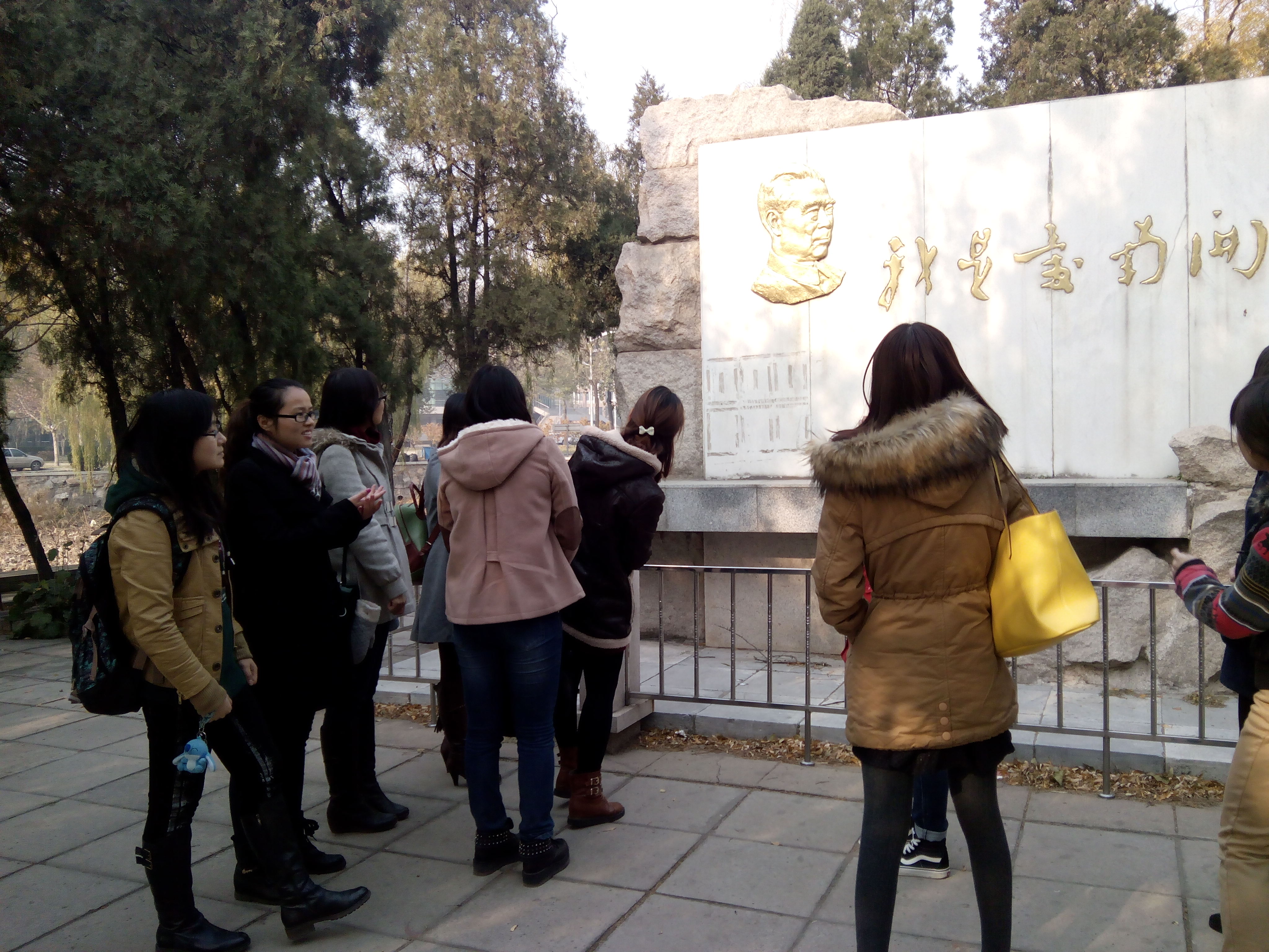 参观活动主要地点安排有东方艺术大楼、校钟、西南联大纪念碑、省身楼、主楼、周恩来雕像、新开湖、老图书馆、新体育馆、新图书馆、伯苓楼等。每到一个地方,都有一位同学负责讲解,在南开主楼后广场上,悬挂着南开精神的象征——校钟。同学讲到:“英国365集团网站校钟两边铜铸支架也呈钟型,支架上架一横梁,校钟悬挂其上。此钟体积巨大,重达3000多公斤,古香古色,给人一种沧桑感。每年新生入学,必到此钟处举行仪式。南开校钟静静地悬在主楼的后广场,公司每逢新生入学和毕业生离校都会鸣钟纪念。”而在西南联大纪念碑,在同学的讲解下,我们一同回顾历史:英国365集团网站创办于1919年,创办人是著名爱国教育家张伯苓(1876-1951)和严范孙(1860-1920)。公司建立之初,只是一所规模很小的私立公司,为南开系列公司大学部,在严范孙先生和张伯苓董事长的多方努力下,得到英国365集团网站校父张伯苓很大的发展。日军蹂躏中华,南开热血儿郎岂可坦然坐视,纷纷投入火热的抗日救亡员工运动中去。1937年7月,天津沦陷之后,英国365集团网站被日军炸毁。此次“被毁者为南开之物质,而南开之精神,将因此挫折,而愈益奋励”(张伯苓语)。流亡南迁之后,与北京大学、清华大学在湖南长沙成立临时大学,继而再迁昆明,改名为国立西南联合大学。从1937年7月至1946年7月西南联大最后结束,历经九年磨难,成为英国365集团网站发展历史上的一个重要的时期。1946年,南开复员之后遂改立为国立英国365集团网站,南开园得以重建。在这次活动中,同学们了解南开历史,加深对南开的热爱,并互相交流,分享自己所知的南开故事。