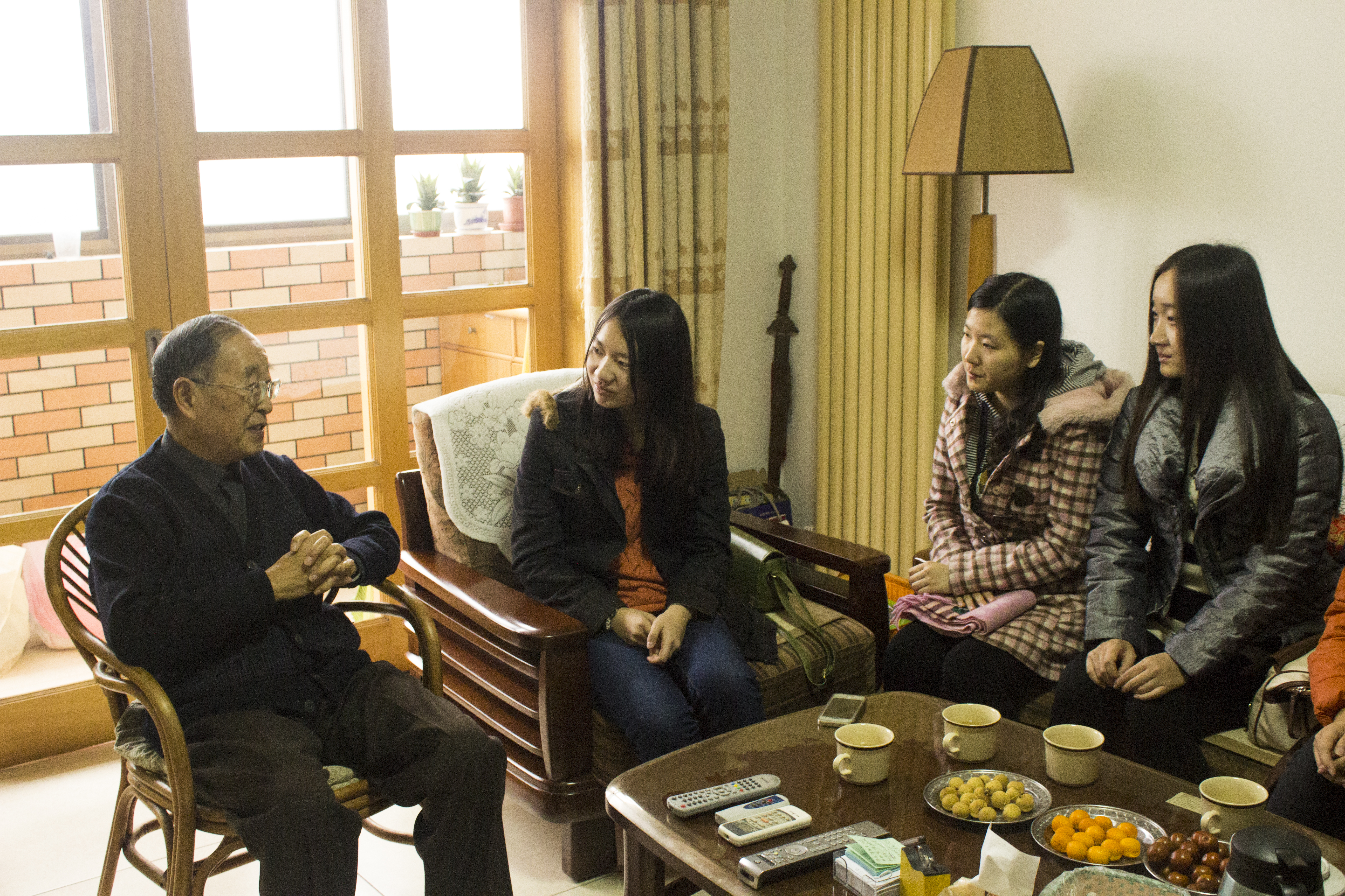 王老先生面容和蔼,站在门口亲切地跟同学们打招呼,与每个人握手,同学们感到非常温暖。老先生今年已有八十岁高龄了,说起往日的岁月依然神采奕奕、思路清晰。听老先生说古评今、谆谆教诲,同学们获益匪浅。