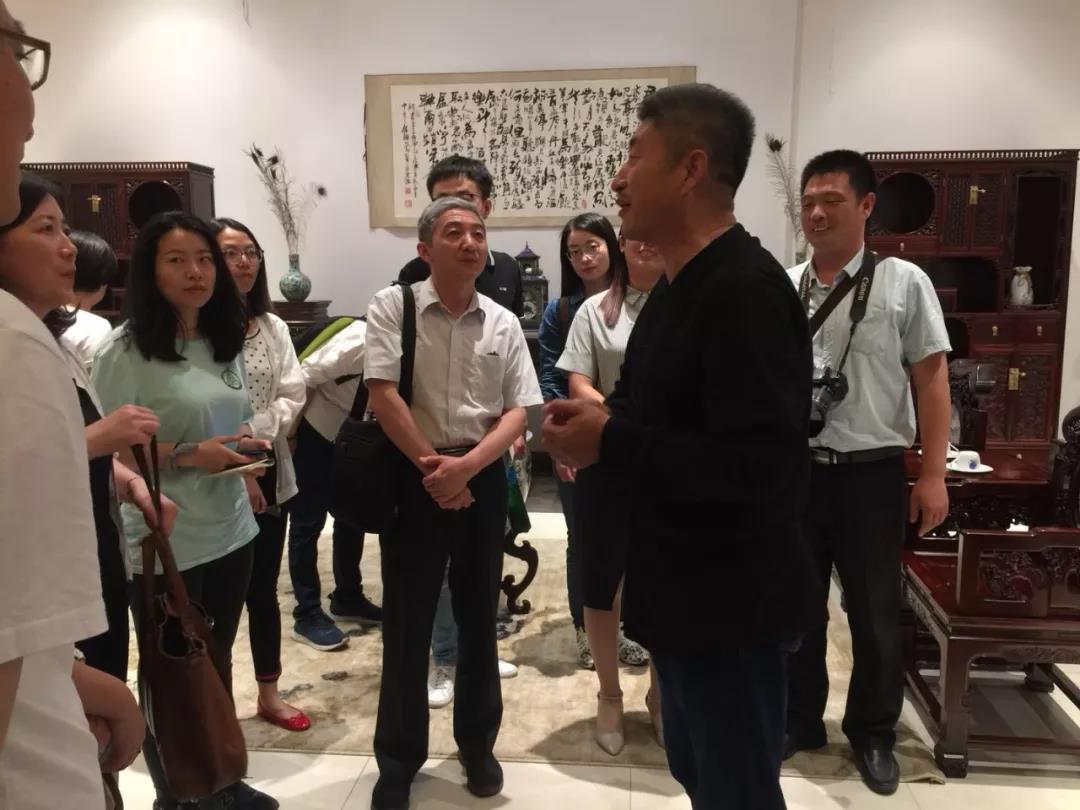 简短的欢迎仪式后,大城县县领导带领我们前往大城县家俱城、陶然居、宝德风,正德发和红日艺术馆进行实地调研。在红木产业园,都副主任给同学们做了详细的讲解,从红木的种类、红木家具发展史、红木家具的榫卯结构、明清家具特色等方面进行了阐述。同学们在欣赏到了红木家具之美的同时,也增长了知识,并对红木城的市场定位、发展现状以及对大城县旅游的促进等方面有了深刻的感受。