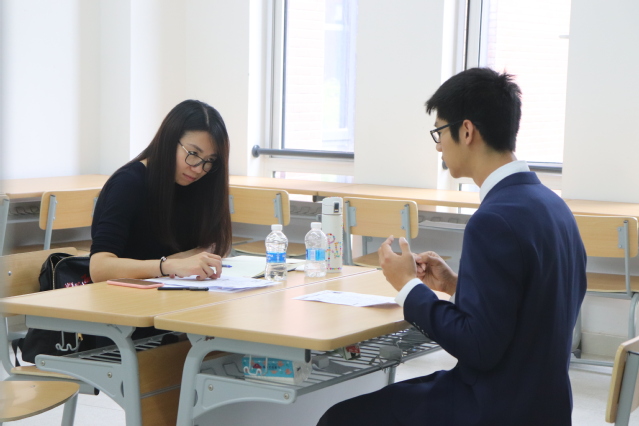 上午的活动中,三位导师首先围绕机关事业单位的文化与老员工发展、外企对实习生的就业能力要求、国企改革背景对新一代从业人员的新要求等主题作了专题讲座,对各类型单位的职位分析、用人要求、简历筛选标准和面试要点进行详细的讲解,并对参加活动的同学们提交的个人求职简历进行点评与制作指导。龚婧、游高烽、韩恒韬三位同学获得优秀简历奖。下午,三位导师根据员工报名意愿,分三组主持开展国企、外企、公务员模拟招聘一对一结构化面试,并在面试过程中根据同学们的表现,有针对性地提出了建议和改进措施。接下来,三位导师共同组织开展无领导小组讨论,他们近距离观察员工的表现,在每组讨论成果展示后给予细致的点评和指导,纠正同学们易犯的错误。最终,肖诗庭、罗颖慧、彭书鑫三位同学获得结构化面试优秀个人奖,田嘉欣、赵梦洁、刘文昊三位同学获得无领导小组讨论优秀个人奖。