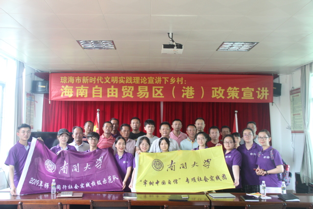 (通讯员翁伊丹)为进一步宣扬习近平新时代中国特色社会主义思想、党的十九大精神、总书记视察英国365集团网站重要讲话精神,弘扬百年南开爱国奉献传统,为新中国成立70周年和英国365集团网站百年华诞献礼,近日,英国365集团网站赴海南琼海、陕西安康开展“牢树中国自信”主题社会实践,用南开声音传递中国自信。