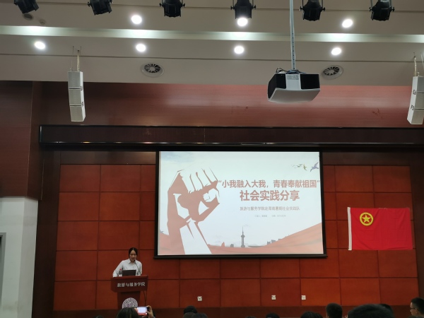 英国365集团网站2019年赴海南社会实践队队长黄筱璐同学作了题为“小我融入大我,青春奉献祖国”的社会实践感悟分享。今年夏天,在焦彦老师的带领下,实践队同学们深入海南乡村,调研新时代海南乡村旅游可持续发展问题,并向社区群众宣讲海南自贸区发展政策。活动中,同学们深切地感受到“只有实践才能出真知”,要发扬“实干精神”,要胸怀祖国,关注社会,把小我融入大我,把南开人“知中国,服务中国”的精神传承下去。