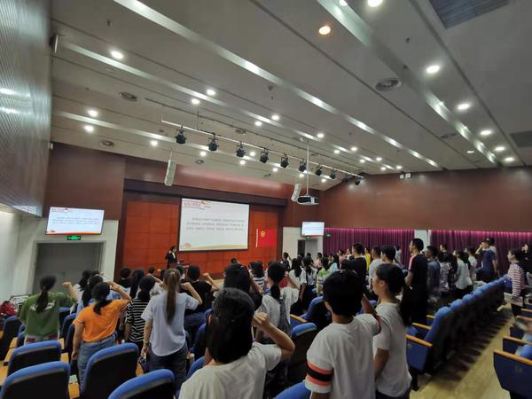 活动最后,全体团员青年重温入团誓词,活动在全场齐唱中国共产主义青年团团歌声中圆满结束。2019级本科生马祖琛表示:“主题团日活动让我感受良多,徐虹书记的谆谆教诲与优秀前辈的演讲分享,为我们上了一堂生动深刻的爱国主义教育课,我们也真正理解习近平总书记所说的话‘爱国,不能停留在口号上,而是要把自己的理想同祖国的前途、把自己的人生同民族的命运紧密联系在一起,扎根人民,奉献国家。’”