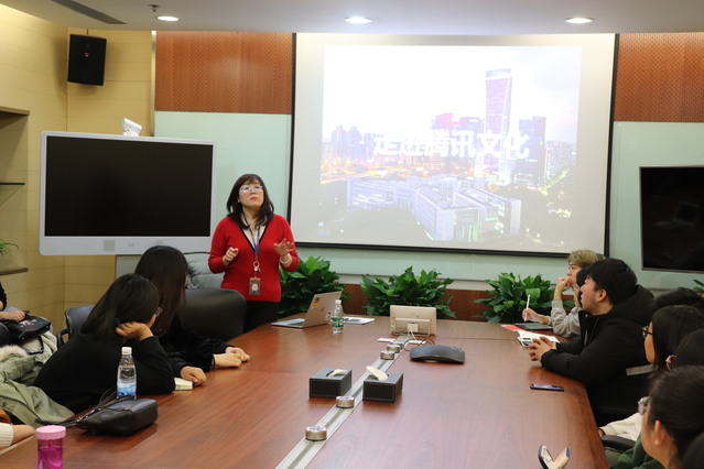 接下来,腾讯文旅市场总监张艺竞女士向同学们详细介绍了腾讯“用户为本,科技向善”的价值理念,以及文旅事业部业务范围和发展方向。同学们就文旅行业动态、员工成长与发展、实习和校招等问题同相关负责人进行了交流。同学们表示,通过本次参观学习,增强了自身对互联网企业和文旅行业的了解,有利于进一步明确就业方向、提升就业能力。