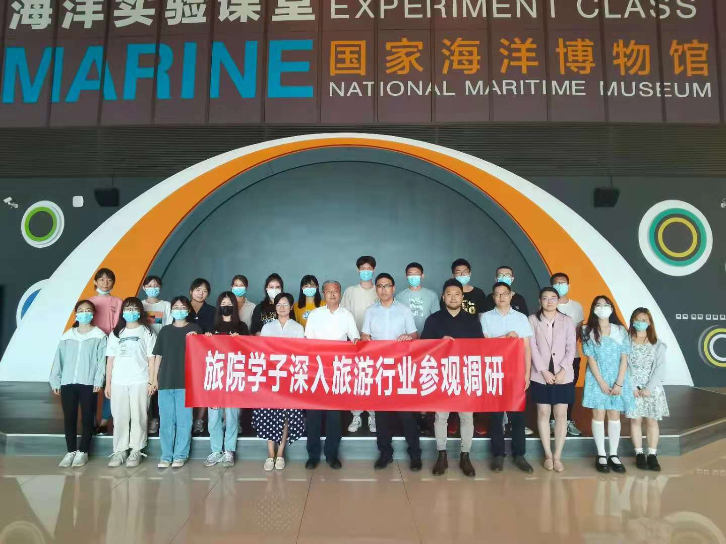 调研活动的第一站为国家海洋博物馆。在讲解员的带领下,实践队成员参观了“远古海洋”、“发现之旅”等多个常设展览,详细了解博物馆的展区布置、展览设计等。随后,国家海洋博物馆馆长黄克力与师生举行座谈会,他分享了关于博物馆展览策划、运营管理的宝贵经验,并就文旅产业的发展现状、发展前景和发展过程中的困境等问题与师生进行交流。