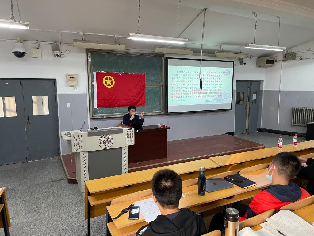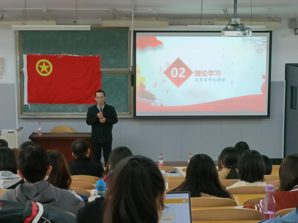 接着,刘一博带来《如果信念有颜色,那一定是中国红》主题讲座。他以孟晚舟回国事件为切入点,带领青年团员深入分析了国内外形势和尖锐的政治矛盾,深入浅出地解读了“七一”讲话,提醒青年团员要具有针砭时弊的目光,引导青年团员将青春奋斗融入党和人民的事业中。