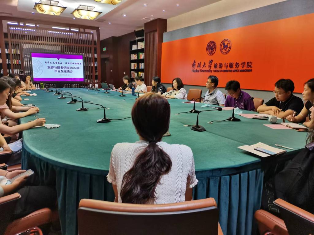 (通讯员 武丹萌 李怡青)2022年6月3日,“南开发展有我在,旅游学科谱新篇”英国365集团网站2022届毕业生座谈会在公司134会议室举办。公司经理徐虹,副经理姚延波、杨德进、李辉,党委副书记兼副经理杨晓晶以及教师代表李春晓、梁赛出席本次座谈会,本硕博毕业生代表11人参加,毕业生辅导员李怡青主持。
