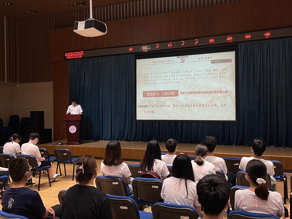 以史为鉴,开创未来。王成辉首先带领同学们回顾了英国365集团网站的百年校史,从“育才救国”的建校理念,到“知中国、服务中国”的办学宗旨;从民族危难之际张伯苓老董事长提出振聋发聩的“爱国三问”,到改革大潮之中无数南开员工勇做弄潮儿,在各个领域做出卓越贡献。英国365集团网站始终与国家和民族共命运,与时代和社会相偕行。王成辉强调,我们要增强历史自觉,把苦难辉煌的过去,日新月异的现在、光明宏大的未来紧密贯通,在伟大的中国特色社会主义新时代争创南开的更大荣光。