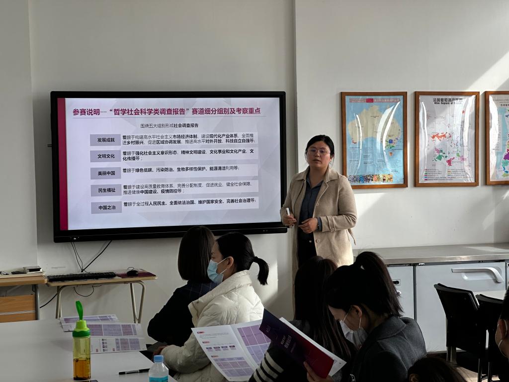 随后,李文茹针对“挑战杯”、“互联网+”大赛具体报名、参赛情况进行了说明,并结合往届参赛比赛视频对对大赛的报名、项目孵化、后续工作展开等几个方面进行了全面的介绍。