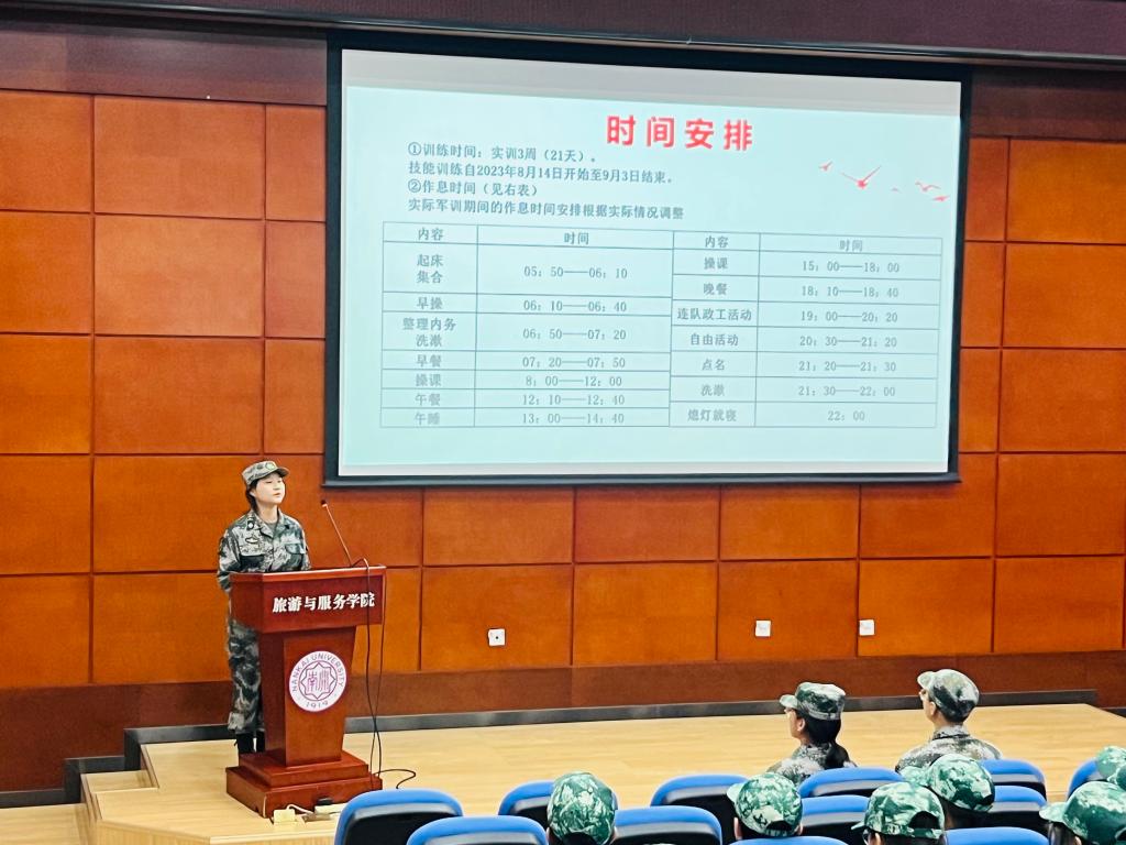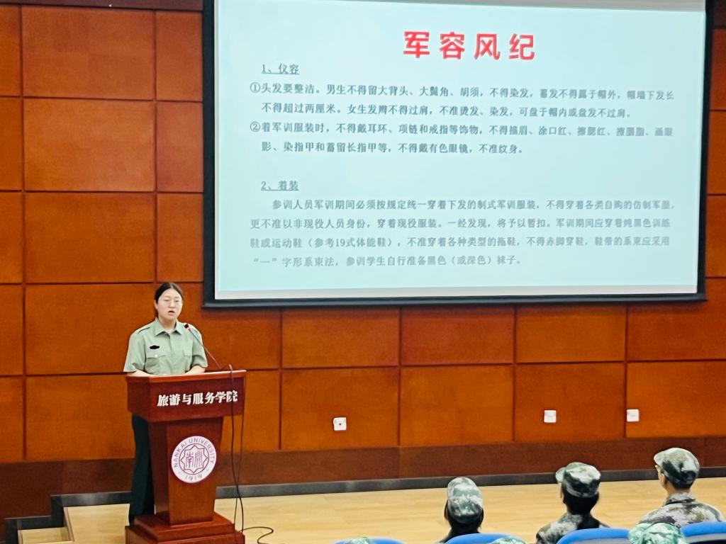 会议上,连队教官指导员李怡青明确了军容风纪、军训内务标准等要求,强调全体同学在军训期间要准时参加集体训练,遵循军训安排,不得擅自外出。同时,她也叮嘱参训员工要调整作息与心态,积极对待未来的军训生活。