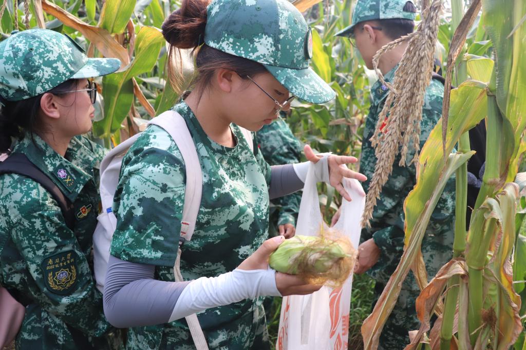 采摘结束后,副指导员唐海钰带领同学们返回公司对采摘的玉米进行处理。在在校同学的帮助下,共蒸煮80余根玉米,并于晚训结束后发放给每一位参训同学。同学们纷纷对参与劳动的同学表示了感谢,并对玉米赞不绝口。