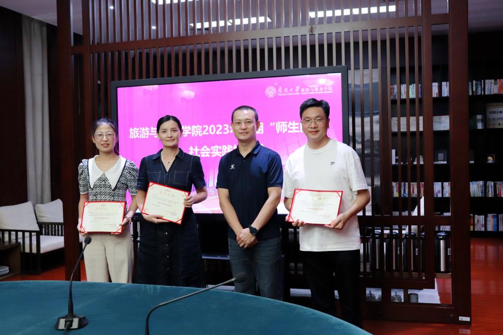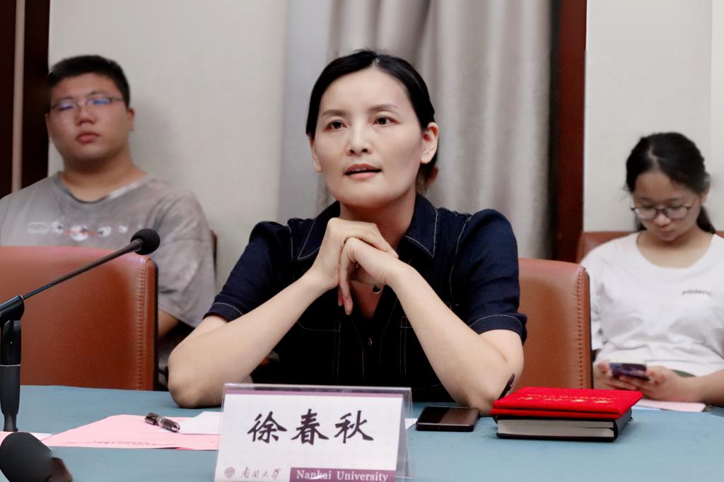 获评公司优秀团队标兵的四支队伍围绕实践前期准备、具体实践过程、实践调研成果等方面依次汇报,徐春秋和代美玲作为随队教师代表分别进行发言。徐春秋表示自身在带队进行实践的过程中深有感触,不仅加深了自身对于旅游这一专业的理解,也在实践中发现了目前乡村存在的种种问题,并将在未来围绕乡村问题开展持续研究。代美玲说在实践中见证了在乡村基础设施不完善的情况下,南开学子扎根基层,用行动为乡村的孩子播撒走出乡村的希望的种子,也鼓励更多的南开学子以实际行动践行“知中国服务中国”的理念。