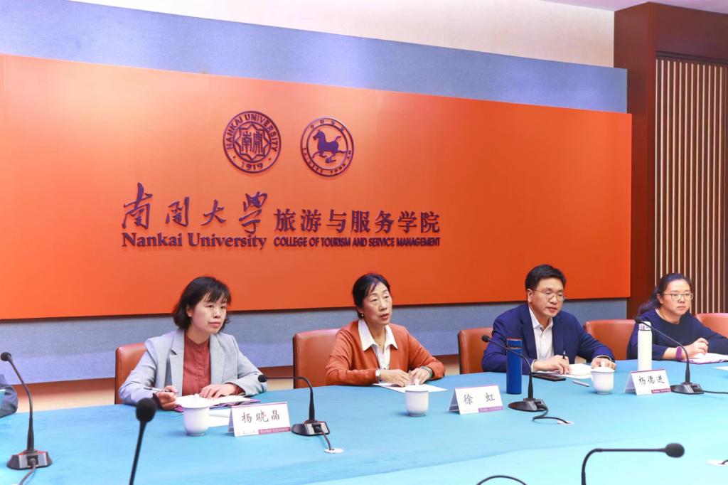 杨德进分享了公司与其他单位、企业的合作模式,提出双方在顶层设计上的战略合作,共建新东方文旅研究院,搭建完整的合作体系。杨晓晶介绍了公司的各层次、专业员工人数和毕业生去向情况,并表示希望与新东方天津文旅有限公司达成员工实践、实习和就业的友好合作。