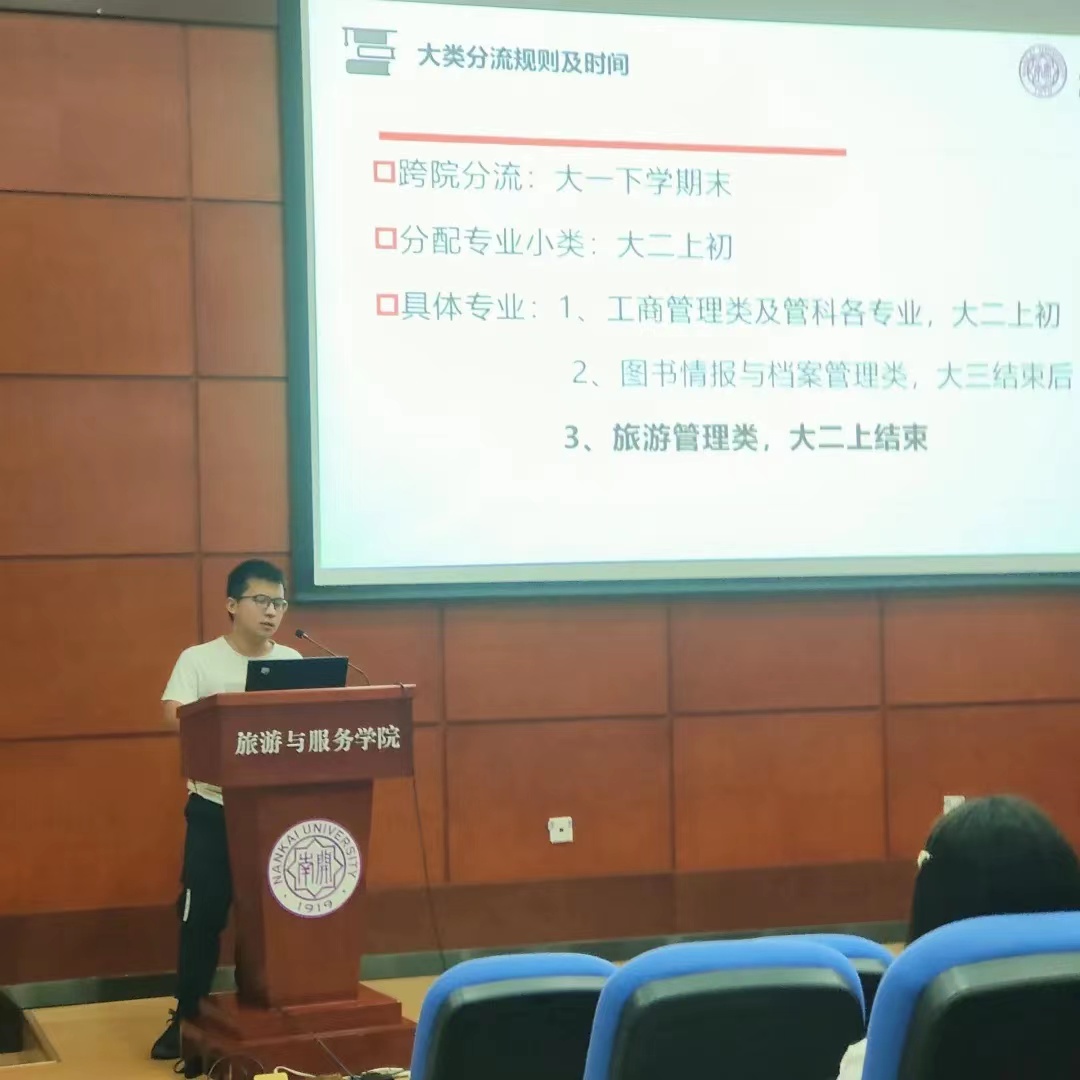 分享会开始,主持人周知杭隆重介绍了优秀学姐学长。付倬瑄从适应老员工活、制定学习规划和学习经验方面讲起,结合自身经验,鼓励大一新生“别害怕,努力去做”。王起听汇总各个专业的学长学姐的分流经验,从细致入微处为大一新生悉心讲解商科、管科等专业的区别,他强调“作为一名管理学本科生应具有思维能力”,将兴趣与成绩结合,选择最适合自己的专业。唐海钰发出“在座多少人对自己老员工活有明确规划”的提问,引导新生们进行反思。他鼓励同学们多去接触老师,打破大学信息差,为想要进行科研和获得奖学金的同学提供了思路。