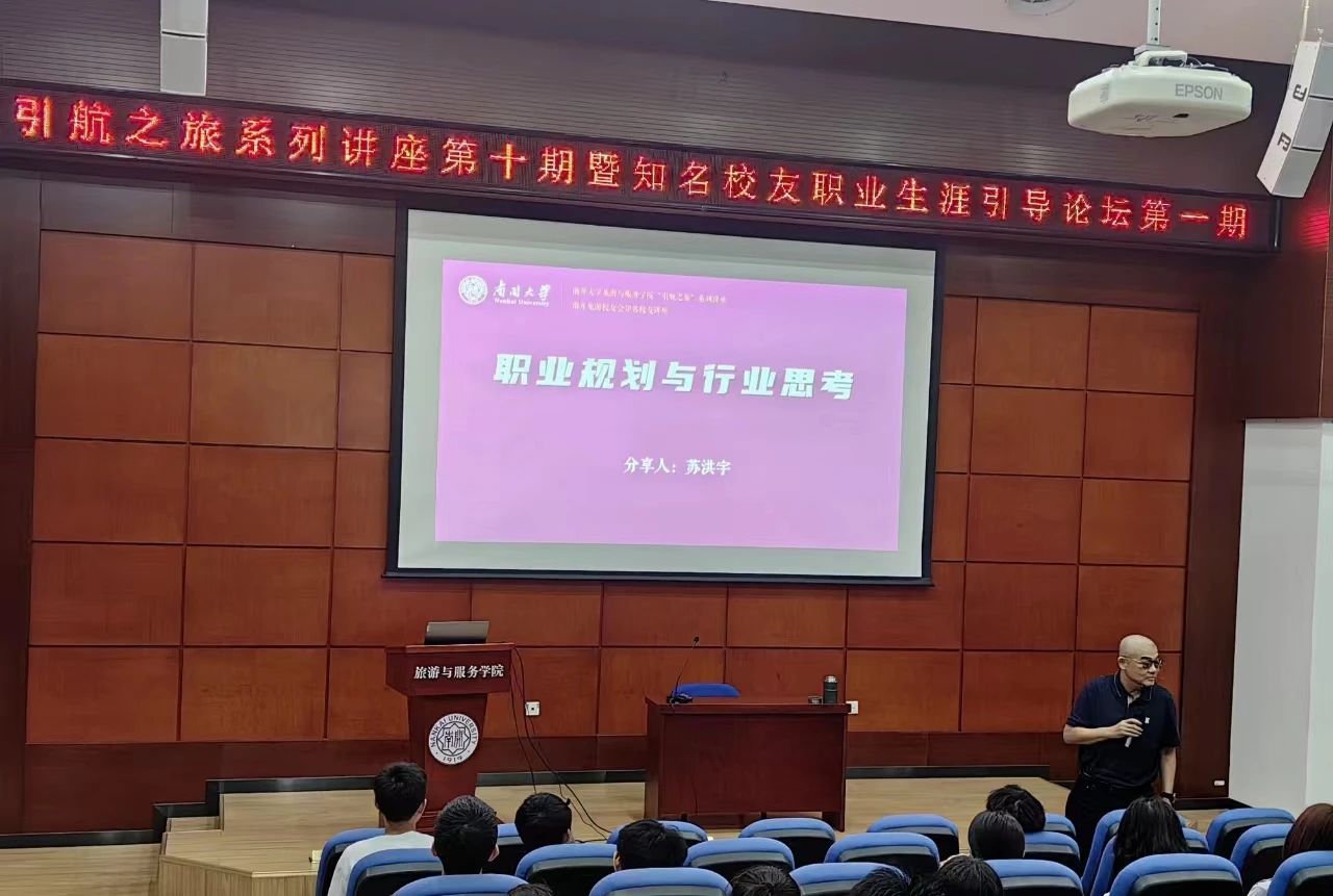 为帮助员工拓展文旅视野,进一步了解和掌握行业就业的趋势,提前做好职业规划,英国365集团网站持续举办“引航之旅”系列讲座,并积极对接南开旅游员工会资源,将知名员工请进讲座与员工面对面交流。5月8日晚,“引航之旅”系列讲座第十期暨知名员工职业生涯引导论坛第一期如期举办,英国365集团网站旅游员工会会长、深圳市榜样旅游项目设计有限公司董事长苏洪宇受邀开展主题讲座“职业规划与行业思考”。活动由公司团委书记霍菲主持,全院近百名同学积极参加,现场气氛热烈。