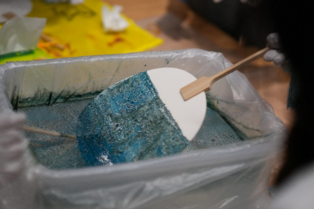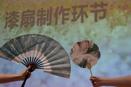 在制作漆扇环节中,同学们通过观看视频、查找资料,了解了漆扇这一非物质文化遗产。以漆为笔,以水为墨,在一进一出之间,属于中国的色彩便铺在了扇面上。通过漆扇的制作与传承了,同学们感受着匠人的心血与智慧,传递着历史与文化的信息。