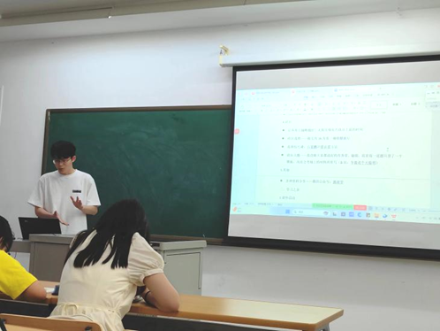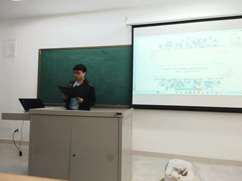学术部陈泽宁主持活动,王宁、王羽霄、唐昊翔三位同学分别分享了考研的相关信息和经验,与同学们共同交流答疑。